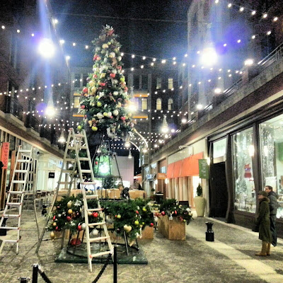 Last night, less than 48 hours before the first potential snow of the holidays, Santa's helpers were bustling all about Bethesda Row. Large Christmas trees - including the main one on Bethesda Lane - were being erected and trimmed.