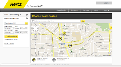 The cars are available 24 hours a day, 7 days a week, and you can also reserve them in advance. No word if they'll add a full-size van like ZipCar has - the biggest Hertz car I found downtown was the Jeep Liberty.