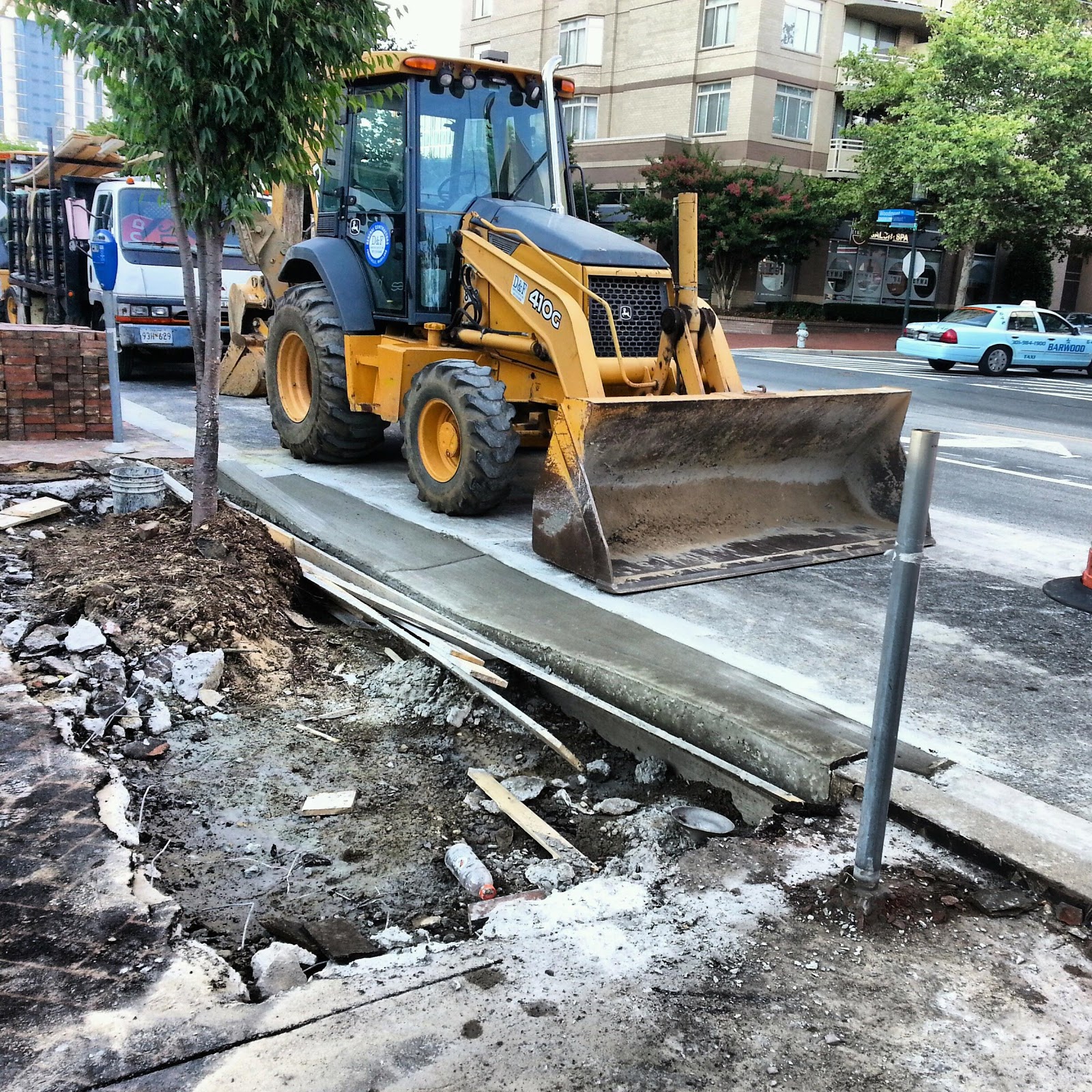 Sidewalk repairs were blocking the west side of the crosswalk as of yesterday evening, requiring pedestrians to walk out into unmarked pavement to reach the crosswalk. I crossed there with caution, but for a senior citizen using a walker, this is a dangerous situation. If you have a disability, this crosswalk is essentially closed to you at this time. I suppose the section in front of the crosswalk had to be done at some point, but the situation is less than ideal.