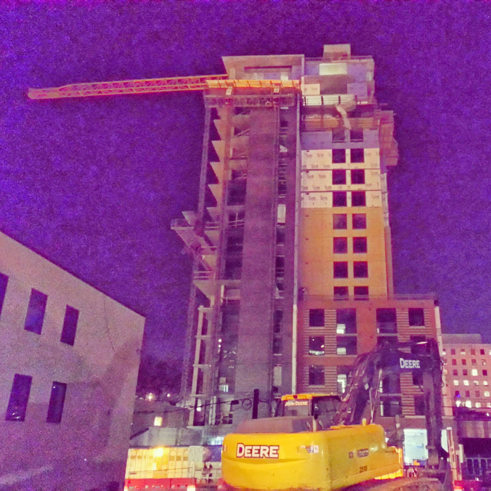 Here's the latest progress at the construction site of the 17-story Bainbridge Bethesda luxury apartment tower between Fairmont and St. Elmo Avenues. You can see a layer of facade climbing up the building, and quite a bit of glass is now in place.