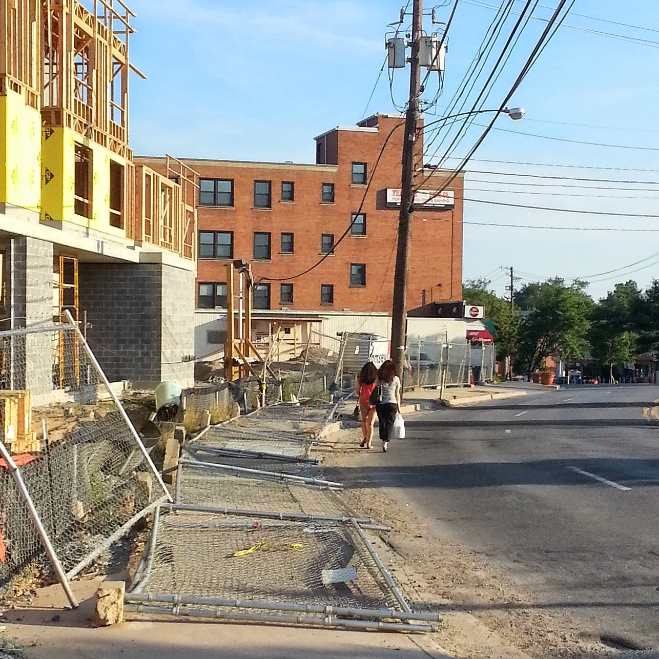 I don't oppose the Bainbridge Bethesda project. How, then, is my report "anti-growth whining?" The street at numerous times has been completely inaccessible to pedestrians. That's not whining, it's just a fact. I understand why the sidewalk has to be closed on the Bainbridge side. I don't understand why the pedestrian detour would be blocked to wheelchair traffic on the July 4th weekend. Or why 7770 Norfolk doesn't have a covered sidewalk on the other side. That's required under county regulations. I don't oppose either project.