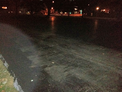 The court wasn't paved at night. It was paved yesterday morning. Not "breaking" in the slightest.