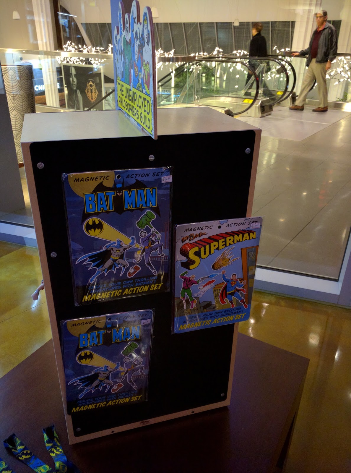 But there is also a special souvenir glass ($12) you can keep if you order a draft beer. Check out their massive poster wall in the lobby, and a treasure trove of Superman, Batman and Wonder Woman merchandise available in the lobby gift shop.