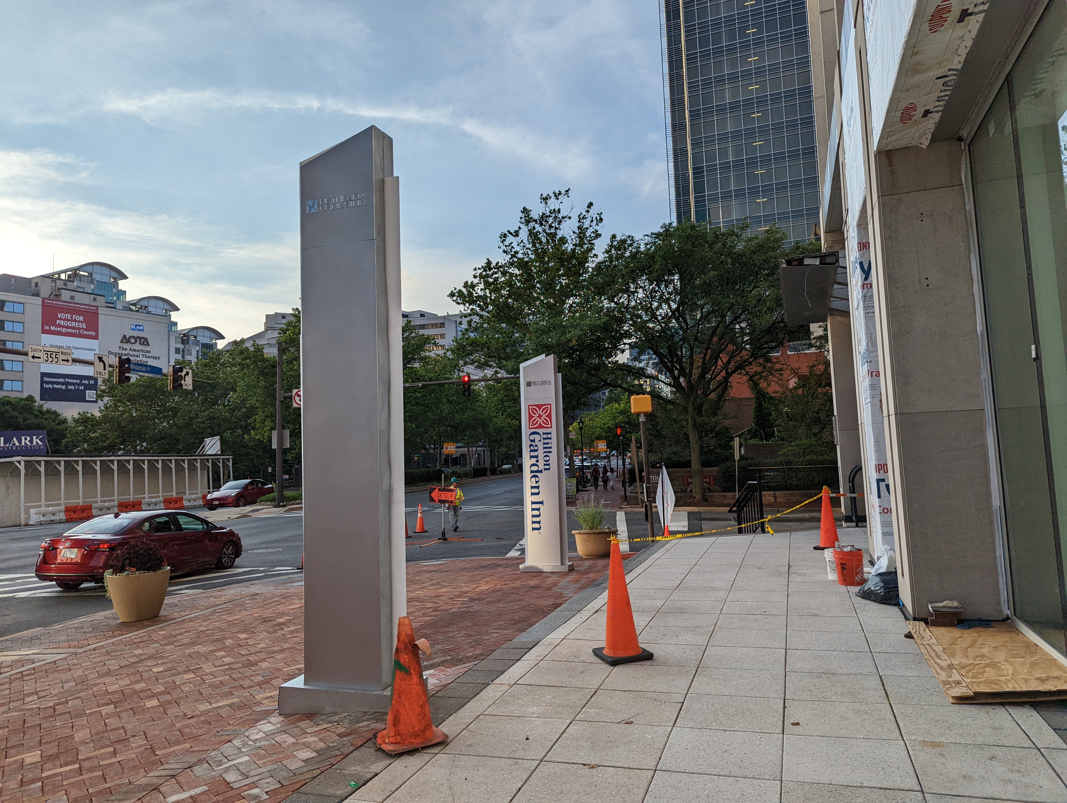 Signage installation is still not completed yet at the new Koons Lincoln of Bethesda dealership at 7315 Wisconsin Avenue. What has been accomplished in the last few days, is the installation of doors through which the vehicles will be moved in and out of the showroom. Inside, you can see what Koons says will be an "elegantly illuminated glass runway, designed to evoke a glass display case" taking shape. Other features will include a modern lounge for customers, a Lincoln Black Label Suite for Black Label clients, a coffee bar, and private sales suites.