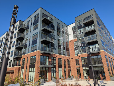 Harwood Flats, a new apartment building at 5454 Nicholson Lane in the White Flint area of North Bethesda, has opened and has welcomed its first residents. Like most buildings, floors are opening for leasing as the interiors of the apartments are completed. Initially, units on floors 1 and 2 have been available. You have the added nostalgia bonus of living along one of the former access roads to the late, great White Flint Mall. Still to be determined - tenants for the ground floor retail space; it's great that developer Foulger-Pratt actually included some retail in this project.