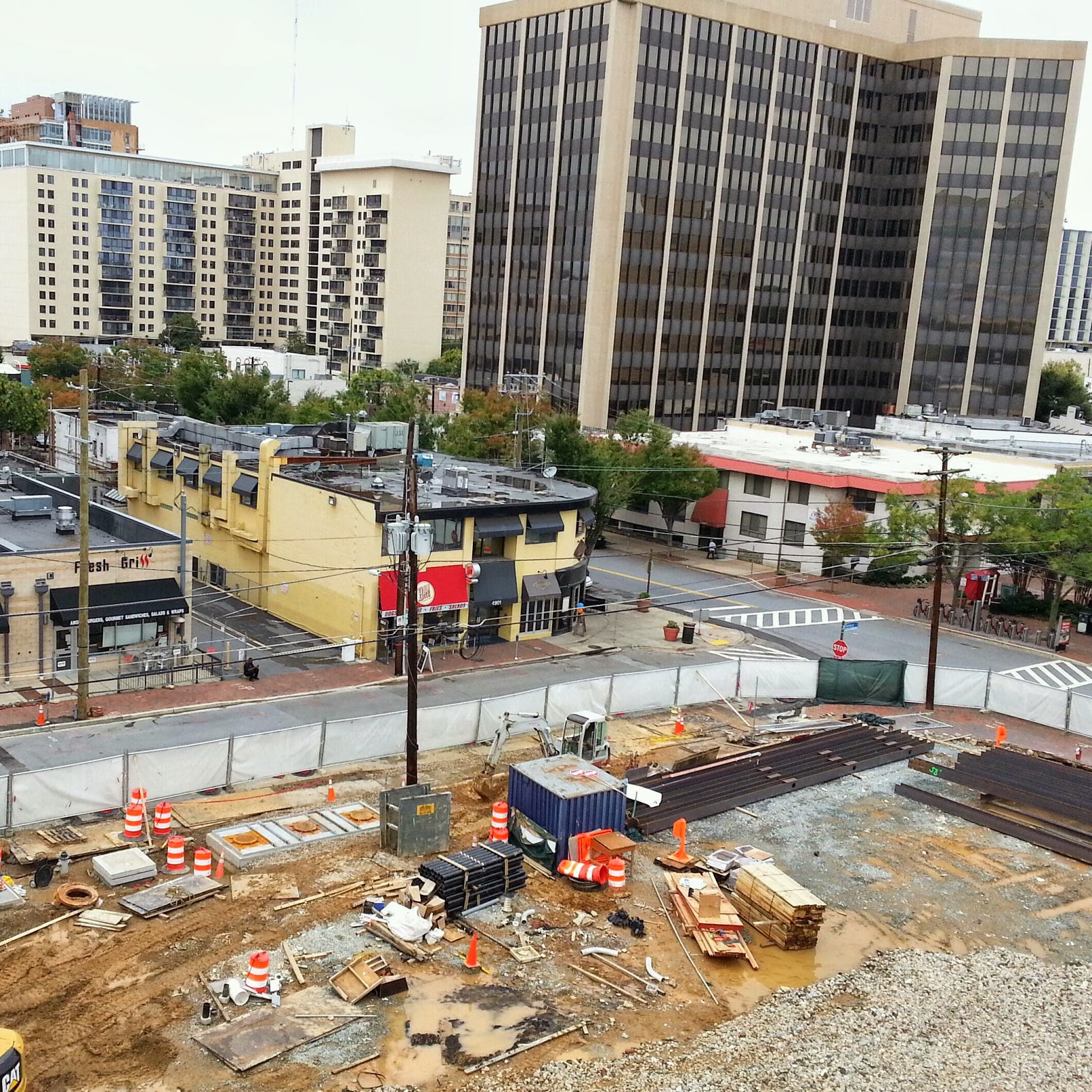 They haven't even gotten far excavating yet, so don't be confused by that Tyvek-wrapped building in the background; that's the Bainbridge Bethesda across Fairmont Avenue.